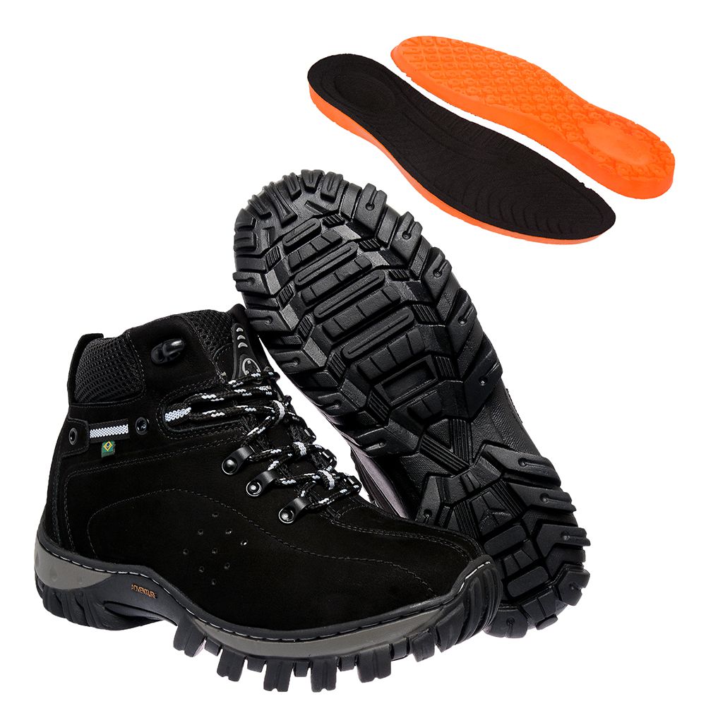 Bota Coturno Adventure Masculino Preto em Couro Legítimo e Solado Costurado