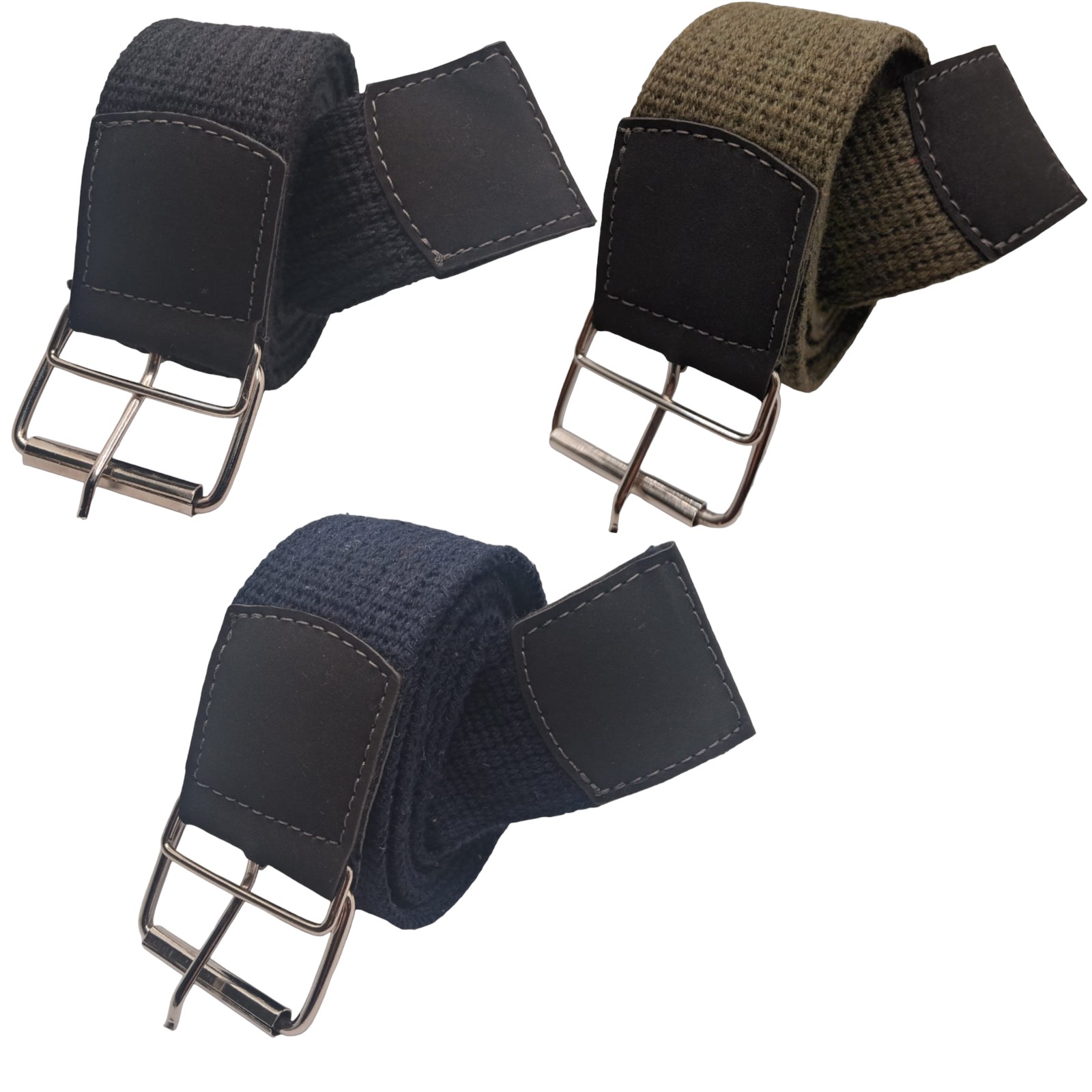 Kit com 3 cintos em Gorgurão com reforço em couro nas pontas,reforçado colado e costurado para maior durabilidade do produto.Fivela em Metal Niquelado.